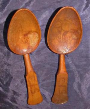 aafa antique 1875 carved & pierced wooden spoons w birds & flowers pennsylvania?