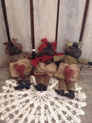 3 Primitive Grungy Mammy Valentine's Dolls With Hearts