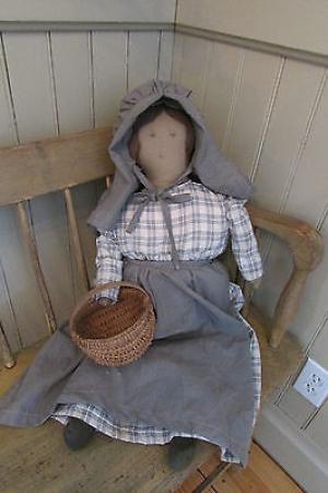PRIMITIVE COUNTRY HOMESPUN DOLL: CONSTANCE 18" Tall Handmade ONE OF A KIND Folk