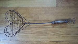 Antique Vintage Heart Egg basket Rug Beater Wooden handle twisted wire