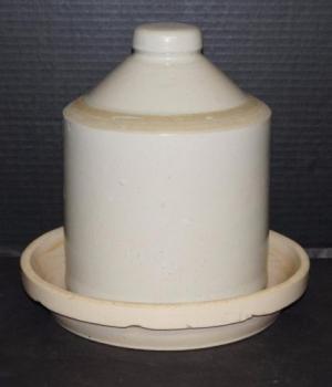 Vintage 1960's Chicken Water Crock + Base 11"H Waterer Used on Farm Good Cond. A
