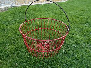 Vintage red coated metal wire egg/clam basket w/swing handle - garden, yard art