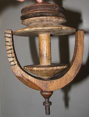 Antique primitive oak wood spinning wheel flyer bobbin spool Lithuania 1900 #2