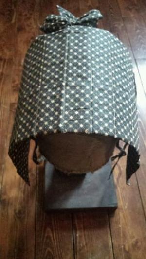 Antique, old black and cream staved bonnet early authentic textile AAFA