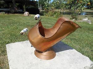 Vintage Copper Coal / Log Scuttle Bucket w/ Porcelain Handles