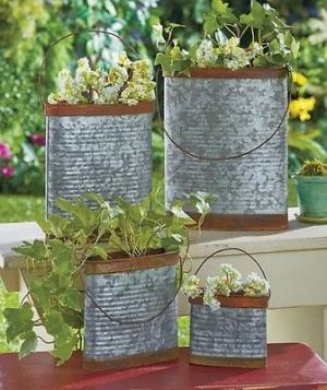 Set of 4 galvanized oval buckets w/handle metal primitive rustic rusty