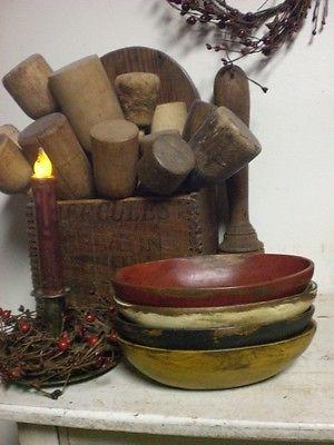 Primitive Lot 4 Painted Wooden Trencher Dough Bowls ~ Wood Bowls