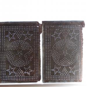 Set of 2 ANTIQUE PRIMITIVE COUNTRY PUNCHED TIN PIE SAFE PANEL STARS RUSTY