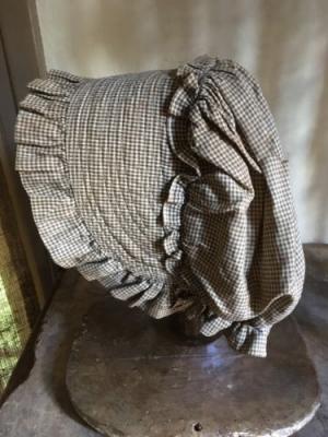 Antique Brown & Cream Handmade Ladies Bonnet Textile AAFA Homespun Well Worn