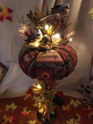 Primitive Fall Pumpkin Candle Stick Shelf Sitter