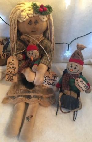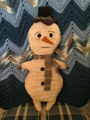 Primitive Winter Christmas Make Do Grungy Doll Snowman Shelf Sitters Tucks