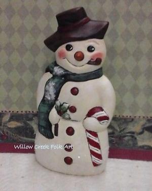 Willow Creek Folk Art 5.5" Primitive~Antique~Style~Chalkware CandyCane Snowman