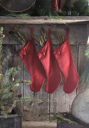 Primitive Country Christmas Make-Do Red Holiday Stockings *Set of 3