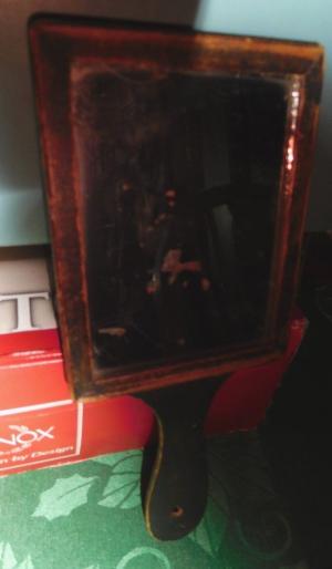 Early Small Hand Held Looking Glass Mirror Original Black Paint Great!
