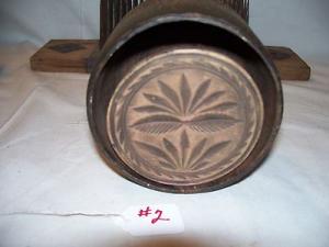 ANTIQUE PRIMITIVE WOODEN BUTTER MOLD NICE STAMP DESIGN #2