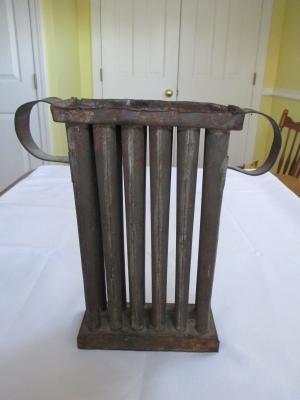 VINTAGE TIN METAL 12 HOLE TWO HANDLE CANDLE MOLD