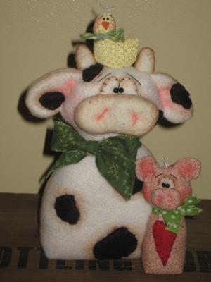 PRIMITIVE HC COW CHICK PIG ORNIE SHELF SITTER BOWL FILLER