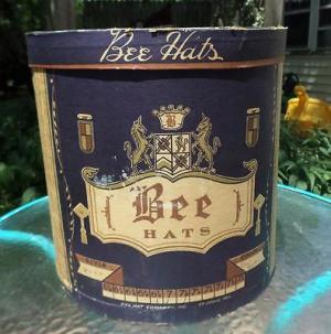 VINTAGE ANTIQUE BEE HAT BOX BEE HAT CO. ST. LOUIS MO. 12" TALL 15" LONG