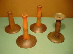 10 Antique Primitive Wood Spool Candle Holders Vtg Old