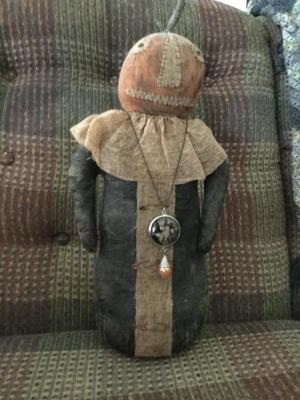 Primitive Halloween Ghost Doll w/ Candy Corn Ornie