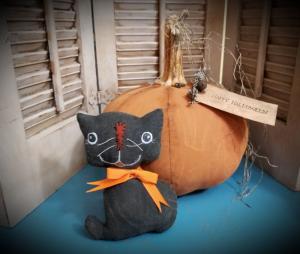 Primitive Grungy 13" Halloween Cat Pumpkin Moon Doll ~ Ro's Cluttered Attic
