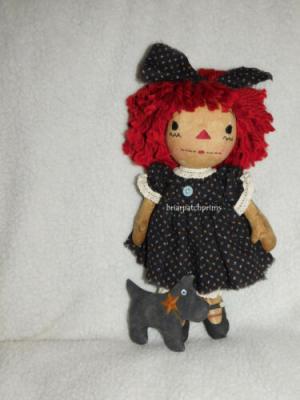 Primitive Raggedy Ann Doll w her Scooty Dog Annie Andy