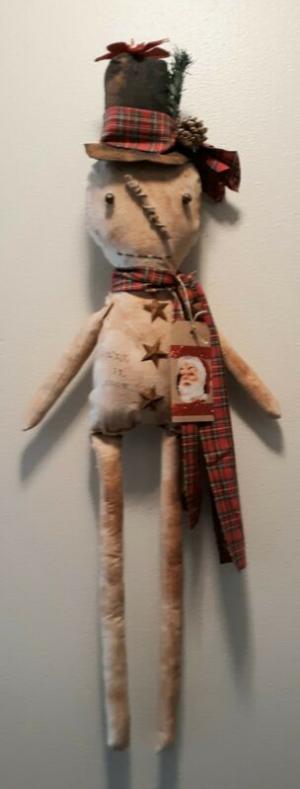 Primitive Grungy Snowman Doll Christmas Santa Hang tag Let it Snow