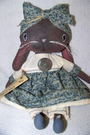Primitive 'Pretty Flowers' Bunny Rabbit Doll Made By a Patti's Ratties Pattern