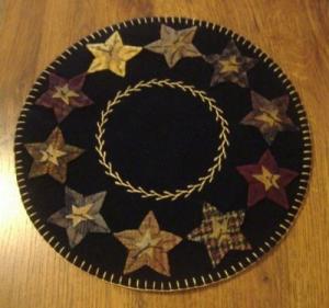 ~Primitive Star Wool Penny Rug~Jar Candle Mat~Rusty Tin Stars~Homemade~