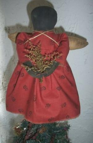 Primitive Black FolkArt Valentine Angel Tree Topper n Drab Red 1700s Repro♥RCP♥