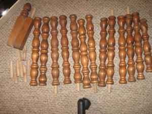13 VINTAGE WOOD SPINDLES AND WOOD PEGS