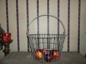 LARGE EGG/GATHERING BASKET HEAVY WIRE W/HANDLE FARM/PRIMITIVE WONDERFUL COND:}