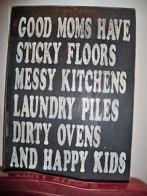 Primitive " Good Moms Have Happy Kids" Funny Cute Family Sign