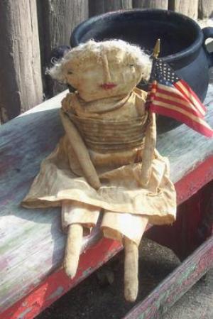 Primitive Folk Art Raggedy Doll Ann Annie 4th of July USA America Country Tag