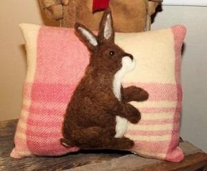 Primitive OOAK Wool Sculpted Bunny Rabbit Pillow