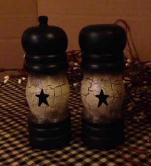 Primitive Wood Salt Shaker And Pepper Mill Crackle Country Farmhouse Decor