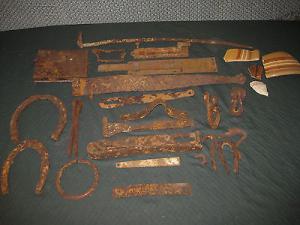 1800's SALVAGE FARM HINGES LOCKS HOOKS J. WALKER IMPROVED LOCK - HODGEPODGE