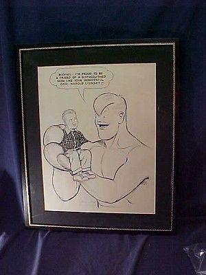 Original 1950s JOE PALOOKA Comic Strip FRAMED PORTRAIT DRAWING by MOE LEFF