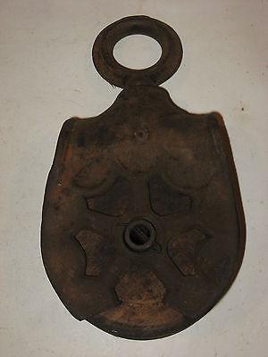 VINTAGE ANTIQUE ORIGINAL CAST IRON ORNATE WOOD WHEEL FARM BARN PULLEY