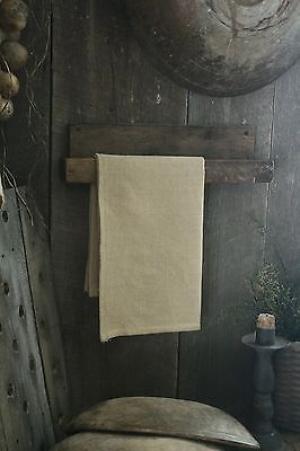 Primitive Early Homestead Look Simple Wooden Towel Holder w/Burlap Towel