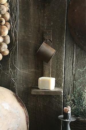 Primitive Early Homestead Look Tabletop to Wall Sink Side Soap Keep w/Cup & Soap