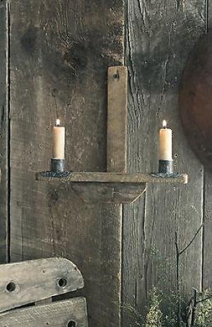 Primitive Early Lighting Inspired Tobacco Lath Double Candle Sconce w/Stubs