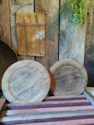 Antique Primitive Farmhouse Make Do Wood Plates Dishes Country Old