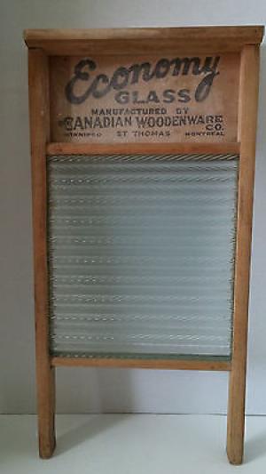 Vintage Canadian Woodenware Co. Economy Glass Wood & Glass 24" Washboard