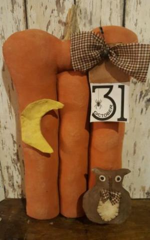 Primitive Halloween Pumpkin w/ Owl & Moon Door Hanger~*~Spooky~*~Doll