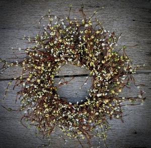 PRIMITIVE BERRY WREATH * AUTUMN FALL DECOR DOOR WALL COLONIAL FARMHOUSE