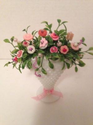 VTG Valentine❤Milk Glass Button Bouquet/Shabby Cottage Chic-Country Home Decor