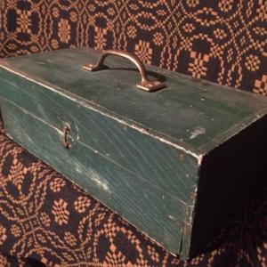 Antique Vintage Original Green Paint Wood Box Brass Hardware Latch AAFA