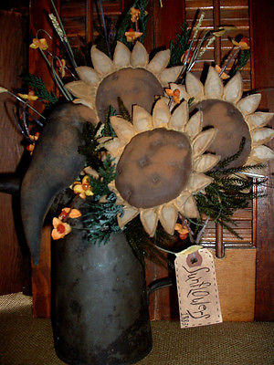 PRIMITIVE VINTAGE OIL CAN~SUNFLOWERS~CROW