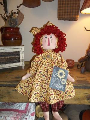 PRIMITIVE RAGGEDY ANN SWEET SUNSHINE SUNFLOWER ANNIE DOLL